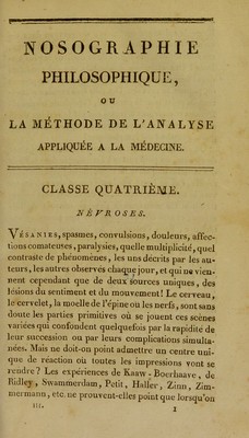 Credit: Nosographie philosophique, ou la méthode de l'analyse appliquée à la médecine / Par Ph. Pinel. Source: Wellcome Collection.