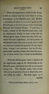 Experiments and observations on the Horely-Green Spaw, near Halifax. To which is added a short account of two other mineral waters in Yorkshire / [Thomas Garnett].