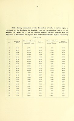 Credit: Supplement to the annual report on the health of the urban sanitary district of Haydock for the year 1897 : containing (1) a life-table for Haydock, based on the mortality of the 10 years, 1881-90, and (2)other tables, setting forth the leading vital statistics for the same decennium / by T.E. Hayward. Source: Wellcome Collection.