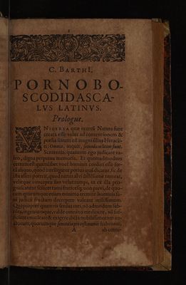 Pornoboscodidascalus latinus. De lenonum, lenarum, conciliatricum, servitorum, dolis, veneficis, machinis plusquam Diabolicis, de miseriis juvenam incautorum ... Liber plane divinus / Lingua hispanica ab incerto auctore instar ludi conscriptus Celestinae titulo ... Caspar Barthius inter exercitia linguae castellanae ... Latio transcribebat.