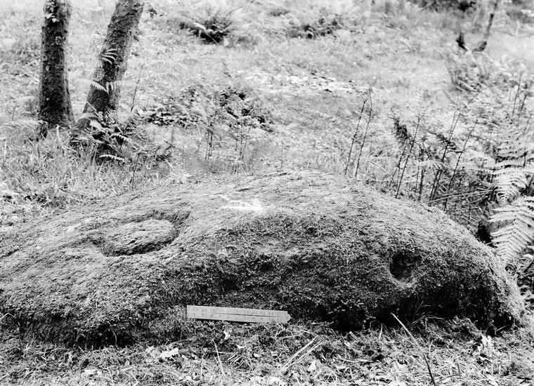 M0015459: Cup and ring markings on a rock, Luss. In copyright. Source: Wellcome Collection.