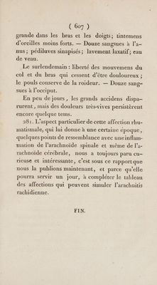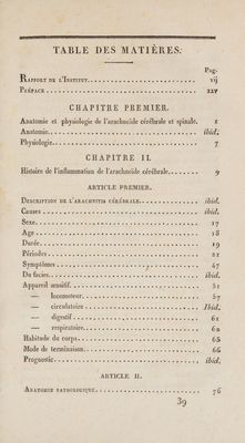Recherches sur l'inflammation de l'arachnoïde, cérébrale et spinale. Ou histoire théorique et pratique de l'arachnitis / Par Parent-Duchatelet et L. Martinet.