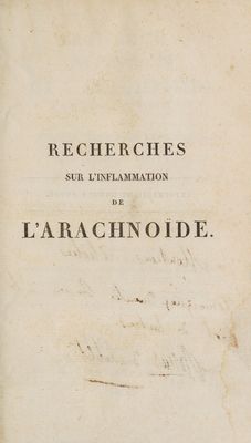 Recherches sur l'inflammation de l'arachnoïde, cérébrale et spinale. Ou histoire théorique et pratique de l'arachnitis / Par Parent-Duchatelet et L. Martinet.