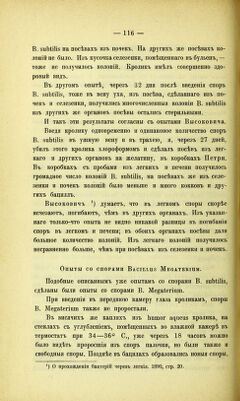 Credit: O sud'bie spor mikrobov v zhivotnom organizm : eksperimental'noe izsliedovanie iz laboratorii Professora I.I. Mechnikova v Institutie Pastera v Parizh : dissertatsii na stepen' doktora meditsiny / F.K. Trapeznikova ; tsenzorami dissertatsii, po porucheniiu Konferentsii, byli professory N.P. Ivanovskii, A.F. Batalin i V.M. Tarnovskii. Source: Wellcome Collection.
