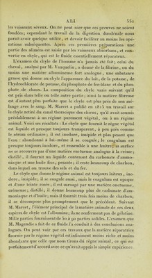 ![ALI On a beaucoup discuté pour savoir s'il n’y avait qu’une seule matière nutritive, si elle était la même dans tous les cas, ou s’il y en avait plusieurs. Beaucoup de médecins célèbres, à la tète desquels il faut placer Hippocrate, se sont déclarés pour la pre- mière opinion; Lorry ]>ensait que le mucilage était cette partie essentiellement nutritive. On a cru devoir descendre dans de longs détails d’analy.,e chimique des substances diverses qui entrent dans notre compo- sition , et faire voir que cette composition était identique dans presque tous les cas, et analogue dans la plupart, avec celle des (démens que nous prenons, pour en conclure que le principe nu- tritif était très-varié, n’était point uniforme. Je ne pense pas que ces observations .soient fort concluantes; car il suffit, pour les détruire , de j>enser qu’un seul des principes immédiats des végé- taux ou des animaux, quelque peu d’analogie qu’il ait avec notre jiropre matière, suffit pour entretenir la vie. Après la digestion d’un aliment qui ne contient point d’albumine, on en trouve Ce- })endant dans le chyle , etc.; ainsi ce n’est point par leur analogie avec notre substance que les végétaux nourrissent, ce n’est pas par ce qu’il y a de l’albumine dans une substance qu’il s’en forme chez nous, mais c e.st par un travail de l’organisation qui nous échappe. Il est bien vrai de dire que les alimens nourrissent plus, sont plus faciles à digérer, exigent moins de travail de la part de nos organes, à mesure qu’ils se rapprochent plus de notre nature; mais il n’en faut pas moins une altération préalable : l’al- bumine ne fait immédiatement pas l’albumine; la gélatine ne fait pas la gélatine, etc. ; mais les principes de ces substances sont altérés, décomposés par l’acte de la digestion pour êti-e recom- posés, redoués de la vie, et servir à notre réparation. S’il en était autrement, il faudrait trouver dans nos alimens exactement les mêmes principes qui nous composent, et certes il n’en est pas ainsi : on sait bien qu’on peut se nourrir long-temps avec une meme substance, et qu il se forme au dedans de nous de l’ammoniaque, de l’acide urique et une foule d’autres matières qui n’entrent jamais dans nos alimens. Ce u’est pas que je pense que le piincipe alibile soit toujours le même, et surtout qu’il soit un corps simple; ou ne peut avoir aucune certitude à cet égard; les travaux des chimistes ne nous ont pas encore éclairé sur ce point ; mais je crois que chaque aliment contient plus ou moins de piincipes nutritifs, que nos organes combinent dans diverses](https://iiif.wellcomecollection.org/image/b21713789_0001_0570.jp2/full/800%2C/0/default.jpg)