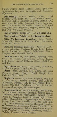 Credit: The compendium of medicine and pharmacy : a handy pocket book of reference for medical practitioners and pharmacists / by C.J.S. Thompson. Source: Wellcome Collection.