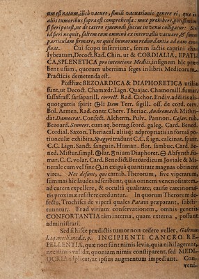 Credit: Disputatio medica inauguralis, ex fundamentis Hippocraticis & hermeticis illustrata, de cancro ... / praeside ... Gothofredo Moebio, ... publico eruditorum examini submittit Johannes Nicolaus Finckius. Source: Wellcome Collection.