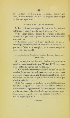Recherches physio-chimiques sur les articulés aquatiques. Deuxième partie. Résistance à l'asphyxie par submersion, action du froid, action de la chaleur, température maxima / par Félix Plateau.