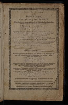 Credit: Hēgemōn eis tas glōssas, [sic] id est, ductor in linguas, the gvide into tongves. Cum illarum harmonia ... et derivationibus in ... undecim lingus / viz: 1. Anglica. 2. Cambro-britanica. 3. Belgica. 4. Germanica. 5. Gallica. 6. Italica. 7. Hispanica. 8. Lusitanica seu portugallica. 9. Latina. 10. Græca. 11. Hebrea, &c. ... Opera, studio, industria, labore & sumptibus Iohannis Minshæi in lucem editum & impressum ... The guide into the tongues. With their agreement and consent one with another, as also their etymologies. Source: Wellcome Collection.
