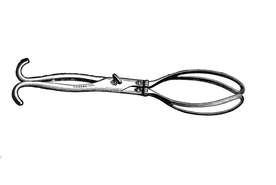 Credit: M0012276: Illustration of McFerran's obstetrical forceps. Source: Wellcome Collection.