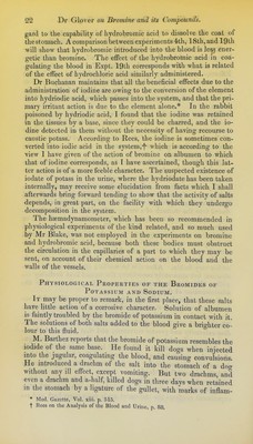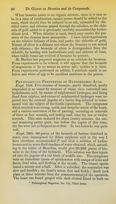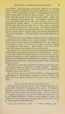 On the physiological and medicinal properties of bromine and its compounds : also on the analogies between the physiological and medicinal properties of these bodies, and those of chlorine and iodine, with their correspondent compounds : being the Harveian Prize Essay for 1842 / by R. M. Glover.