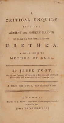 A critical enquiry into the ancient and modern manner of treating the diseases of the urethra. With an improved method of cure / [Jesse Foot].