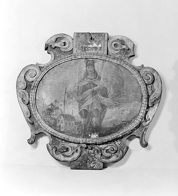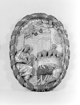 M0014065: Carved panel showing Saint Felicity and her seven sons / M0014066: Wood panel showing Saint Florian