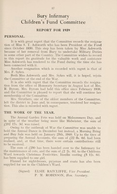 Annual report : 1939 / Bury Infirmary.