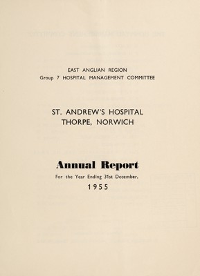 Credit: Annual report for the year ending 31st December, 1955 / St. Andrew's Hospital, Thorpe, Norwich. Source: Wellcome Collection.
