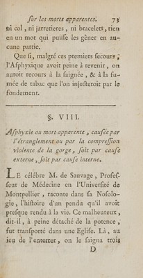 Avis au peuple, sur les asphyxies, ou morts apparentes et subites, contenant les moyens de les prévenir et d'y remédier. Avec la description d'une nouvelle boëte fumigatoire portative / [Joseph Jacques de Gardane].