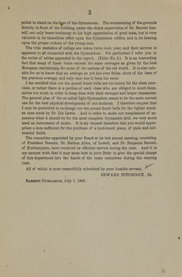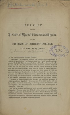 Report of the professor of physical education and hygiene to the trustees of Amherst College for the year 1862-3.