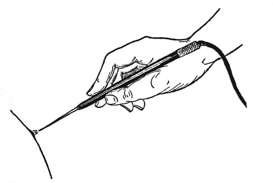 Credit: M0015381: Diagram showing technique for fulguration or non-contact monterminal surgical diathermy. Source: Wellcome Collection.