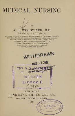 Credit: Medical nursing / by A. S. Woodwark. Source: Wellcome Collection.