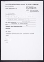 La Jolla - Brenner, Sydney (Correspondence to and from his secretary at Cambridge; includes scientific correspondence from Leslie Barnett)