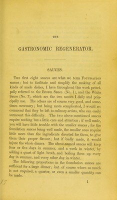 The gastronomic regenerator : a simplified and entirely new system of cookery with nearly two thousand practical receipts suited to the income of all classes. Illustrated with numerous engravings and correct and minute plans how kitchens of every size, from the kitchen of a royal palace to that of the humble cottage, are to be constructed and furnished / by Monsieur A. Soyer.