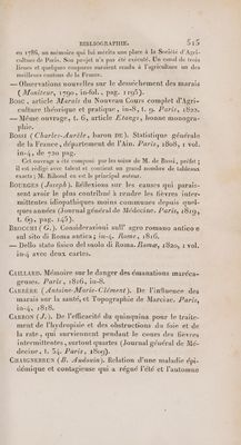 Histoire médicale des marais, et traité des fièvres intermittentes, causées par les émanations des eaux stagnantes / [Jean Baptiste Monfalcon].
