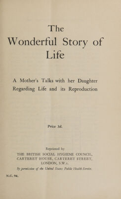 The wonderful story of life : a mother's talks with her daughter regarding life and its reproduction / reprinted by the British Social Hygiene Council ... by permission of the United States Public Health Service.