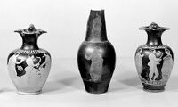 M0016194: Three Greek oinochoe decorated in red figure technique, late 5th to early 4th century BC. Attribution 4.0 International (CC BY 4.0). Source: Wellcome Collection.
