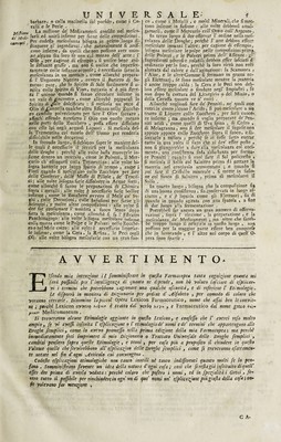 Farmacopea universale che contiene tutte le composizioni di farmacia le quali sono in uso nella medicina, tanto in Francia, quanto per tutta l'Europa, le loro virtù, dose, e maniere di mettere in pratica le più semplici e le migliori ... e di più un vocabolario farmaceutico, molte nuove osservazioni, ed alcuni ragionamenti sopra ogni operazione ... tradotta dalla lingua francese ... / [Nicolas Lémery].