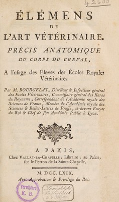 Elémens de l'art vétérinaire. Précis anatomique du corps du cheval, à l'usage des élèves des Écoles Royales Vétérinaires / [Claude Bourgelat].