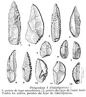 M0015597: Illustration of Paleolithic points found at Chatelperron, France. In copyright. Source: Wellcome Collection.