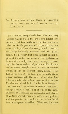 Credit: On difficulties which exist in administering some of the Sanitary Acts of Parliament / by James B. Hutchins. Source: Wellcome Collection.