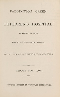 Report : 1904 / Paddington Green Children's Hospital.