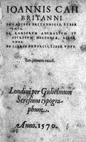 M0017949: Caius: <i>De Canibus Briatnicis</i>, 1570: title page. Public Domain Mark. Source: Wellcome Collection.