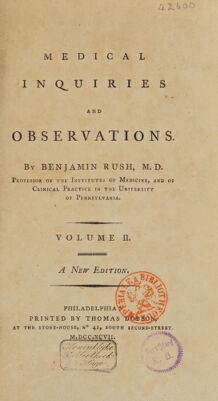 Medical inquiries and observations / by Benjamin Rush, M.D. Professor of the institutes of medicine, and of clinical practice in the University of Pennsylvania ; vol. II.