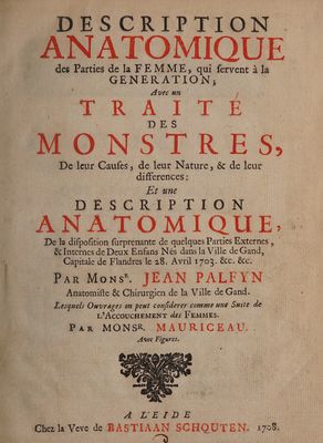 Description anatomique des parties de la femme, qui servent à la generation; avec un Traité des monstres [by F. Licetus], de leur causes, de leur nature, & de leur differences : et une description anatomique, de la disposition surprenante de quelques parties externes & internes de deux enfans nés dan la ville de Gand, capitale de Flandres le 28 avril 1703 ... &c. &c / par Jean Palfyn ; Lesquels ouvrages on peut considerer comme une suite de l'Accouchement des femmes. Par Monsr. Mauriceau.