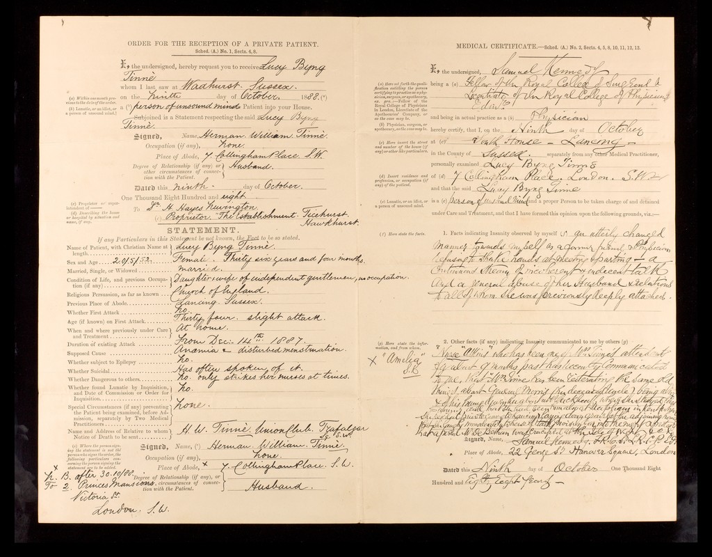 Credit: Patient Certificates and Notices: Admission date 1888. Source: Wellcome Collection.