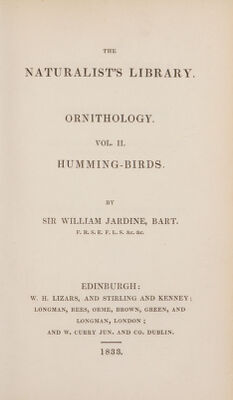 The natural history of humming birds / By Sir William Jardine, Bart.
