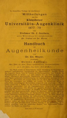 Albrecht von Graefe's Verdienste um die neuere Ophthalmologie / aus seinen Werken dargestellt von J. Jacobson.