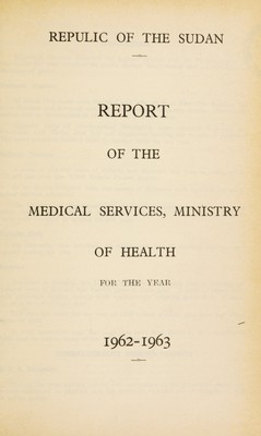 Report of the Medical Services, Ministry of Health, Sudan Government.