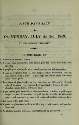 Credit: Catalogue of the interesting collection of ... rings, seals, and trinkets ... arms; and ... fowling pieces; of ... the Duke of Sussex ... which ... will be sold by auction, by Messrs. Christie and Manson ... on ... June the 28th, 1843, and four following days / [Augustus Frederick]. Source: Wellcome Collection.