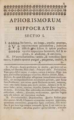 Credit: Aphorismi, atque Praesagia Latine versa cum recognitione, et notis Andreae Pastae / Ed. altera ab auctore auctore emendata, et observationibus quamplurimis medicis aucta. Acc. ... prolegomena, in quibus de Aphorismorum, Praesagiorumque auctore, de utrorumque scriptorum praestantia, deque sententiarum in eisdem contentarum usu disseritur. Source: Wellcome Collection.