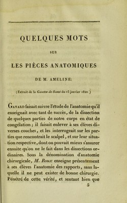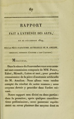 Mémoire sur l'utilité des pièces d'anatomie artificielle chirurgicale / par J.-F. Ameline.