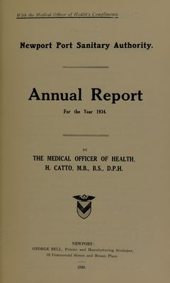 Credit: [Report 1934] / Medical Officer of Health, Newport (Gwent) Port Health Authority. Source: Wellcome Collection.