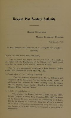 [Report 1934] / Medical Officer of Health, Newport (Gwent) Port Health Authority.