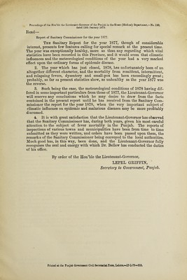 Report on the sanitary administration of the Punjab and proceedings of the Sanitary Board for the year ... and the report on sanitary works for.