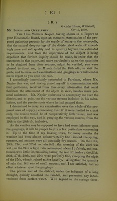 Suggestions for the supply of the Metropolis from the soft water springs of the Surrey sands, addressed to the General Board of Health / by the honble William Napier. (Presented to both Houses of Parliament by the General Board of Health).