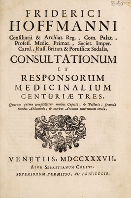 Credit: Consultationum et responsorum medicinalium centuriae tres, quarum prima complectitur morbos capitis, & pectoris; secunda morbos abdominis; & morbos artuum externorum tertia / [Friedrich Hoffmann]. Source: Wellcome Collection.