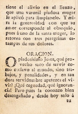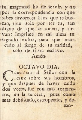 Novena de la Santa Veronica : o rostro sangriento de neustro padre y amorosisimo señor Jesucristo eficacisima para lograr una buena vida, y dichosa muerte, y tambien para qualquier trabajo, ó necesidad, y en especial para consequir la sanidad del cuerp en las enfermedades.