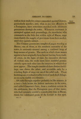 An authentic account of an embassy from the King of Great Britain to the Emperor of China; including cursory observations made, and information obtained in travelling through that ancient empire, and a small part of Chinese Tartary / Together with a relation of the voyage undertaken on the occasion of His Majesty's ship the Lion, and the ship Hindostan, in the East India company's service, to the Yellow Sea and Gulf of Pekin; as well as of their return to Europe. Taken chiefly from the papers of His Excellency the Earl of Macartney ... Sir Erasmus Gower ... and of other gentlemen. In the several departments of the embassy. By Sir George Staunton.